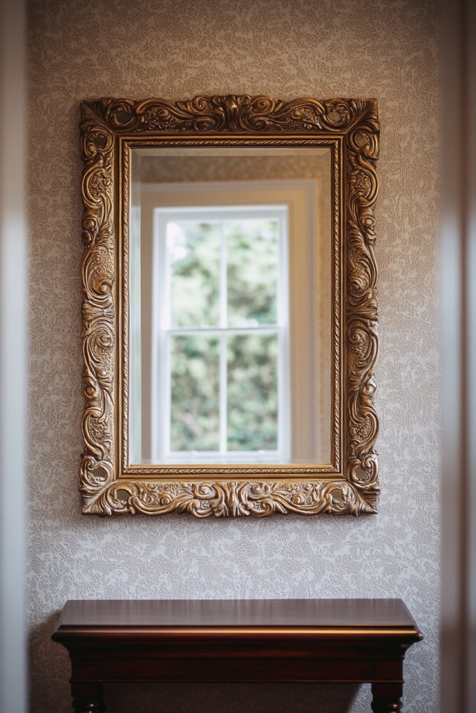 4. Hang a Mirror with a Unique Frame to Enhance Light and Space