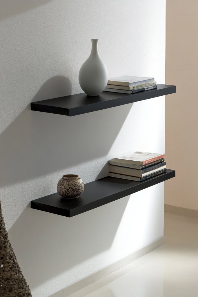 Imagine a row of minimalist wooden shelves holding candles, books, or small plants. The clean lines and open design make your walls look taller and more spacious. The shelves become a gallery for your favorite objects, adding interest and personality. It’s like creating a mini museum right in your home.