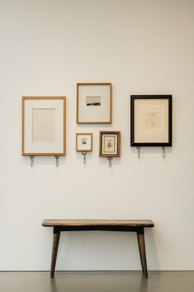 Mix frame styles—wood, metal, or painted—to create an eclectic look. Arrange the frames in a grid, salon style, or freeform for a more relaxed vibe. Incorporate different types of art, from photographs to illustrations or textured prints. Swap out or add new frames seasonally for ongoing freshness.