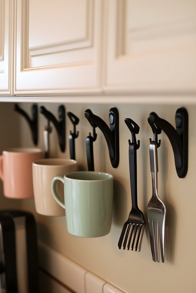 10. Hang Hooks Under Cabinets for Mugs and Cooking Tools