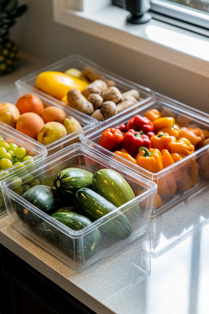 11. Use Transparent Bins for Fruit and Vegetable Storage