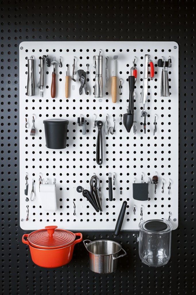 A pegboard transforms cluttered counters into a tidy, organized workspace. It encourages better tool management and makes cooking more efficient. Seeing your tools displayed neatly inspires pride and motivates ongoing organization. It’s a simple, impactful upgrade that improves daily routines and adds a creative flair to your kitchen.