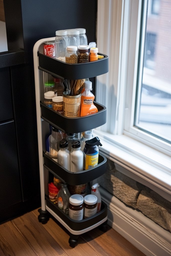 17. Incorporate Slim Rolling Carts for Flexible Storage
