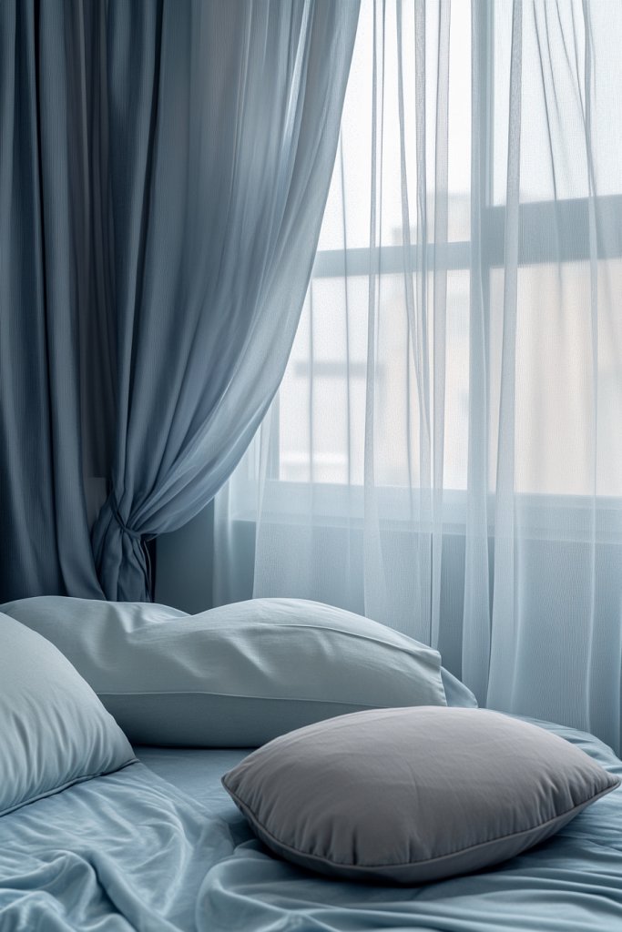 Choose lightweight linen or cotton for a breezy vibe, or opt for textured fabrics like boucle or velvet for warmth and luxury. Layer sheer curtains with blackout shades for versatility—perfect for sleeping or daytime lounging. Consider color coordination with your bedding or wall color for a unified look. Select minimal hardware—like slim rods or discreet brackets—to keep the look sleek and space-efficient.