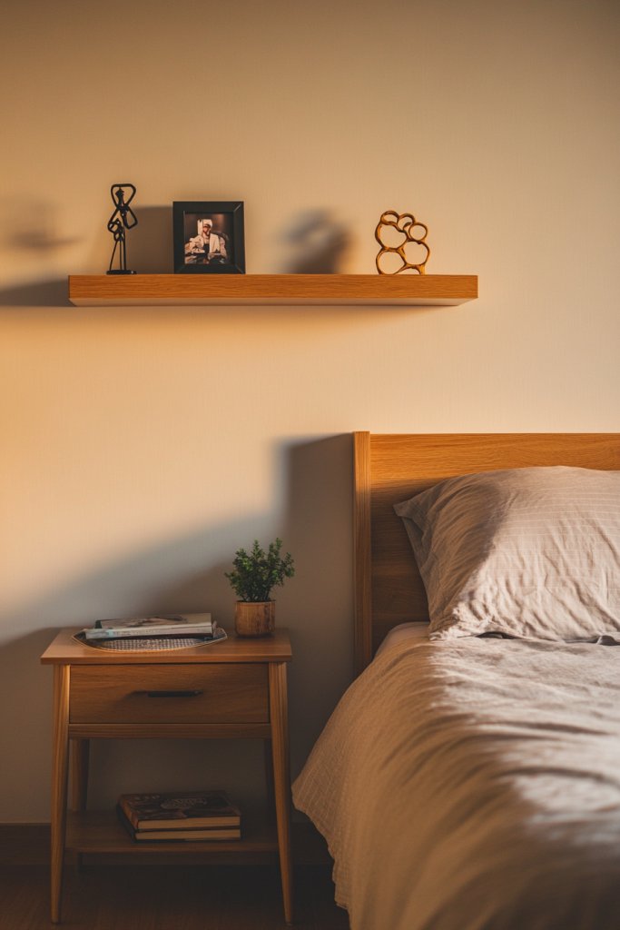 12. Add Personal Touches with Meaningful Decor Items on Floating Shelves or Nightstands