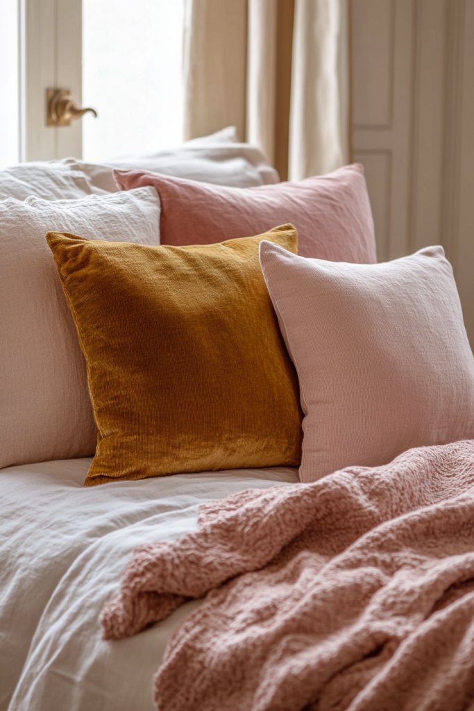 14. Use Soft, Ambient Color Accents, Like Cushions or Throws, to Add Visual Warmth