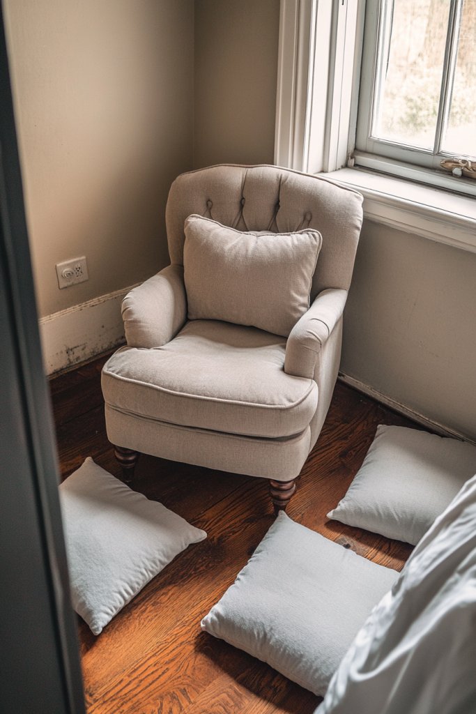 15. Incorporate a Small, Cozy Seating Nook with a Compact Armchair or Floor Cushions