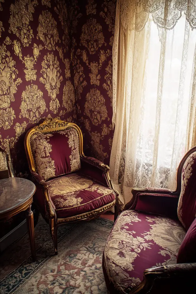 1. Elegant Wallpaper with Vintage Patterns for a Rich Victorian Feel