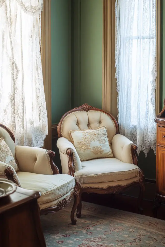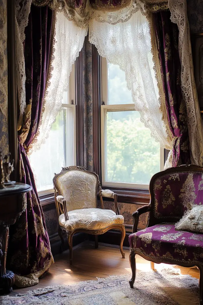 7. Victorian-Style Window Treatments with Lace or Brocade Curtains