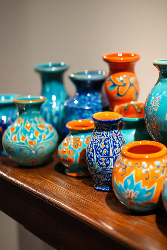 Looking to add a splash of color and artisan craftsmanship to your space? Colorful ceramic vases and pottery are perfect for injecting regional character without overwhelming your decor. They serve as focal points on shelves or mantels and can double as storage for dried florals or small items. If your home feels a little dull, these vibrant pieces can brighten it up instantly.