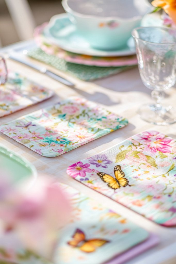 Picture a table adorned with placemats featuring florals, pastel stripes, or polka dots. Each place setting is enhanced with coasters that match or contrast beautifully. The patterns tie in your color palette, making everything look cohesive and lively. The textures of fabric or cork add an extra layer of tactile interest, inviting guests to touch and appreciate the details.