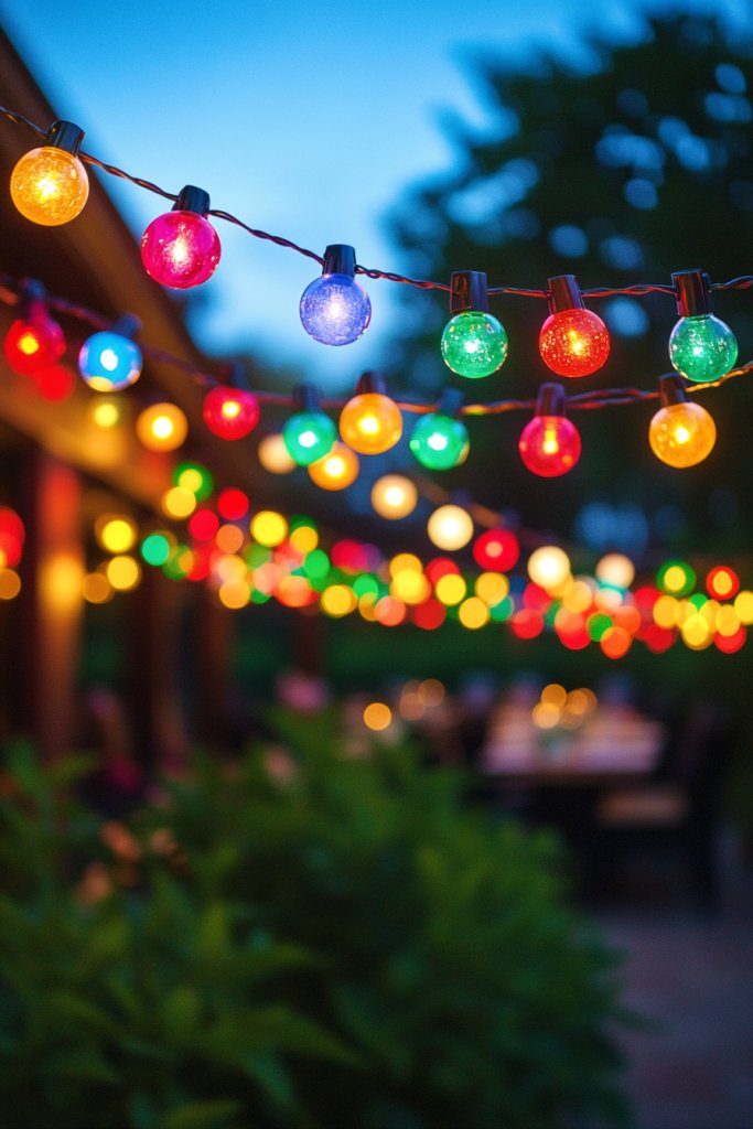 Choose high-quality, colorful string lights suitable for your space—outdoor or indoor. Measure the area and plan your layout before hanging. Use hooks, clips, or zip ties to secure the lights, ensuring they’re taut and safe. Plug in and test the lighting setup before guests arrive. Adjust the height and tension to avoid sagging or tangling, and add extra extension cords if needed.