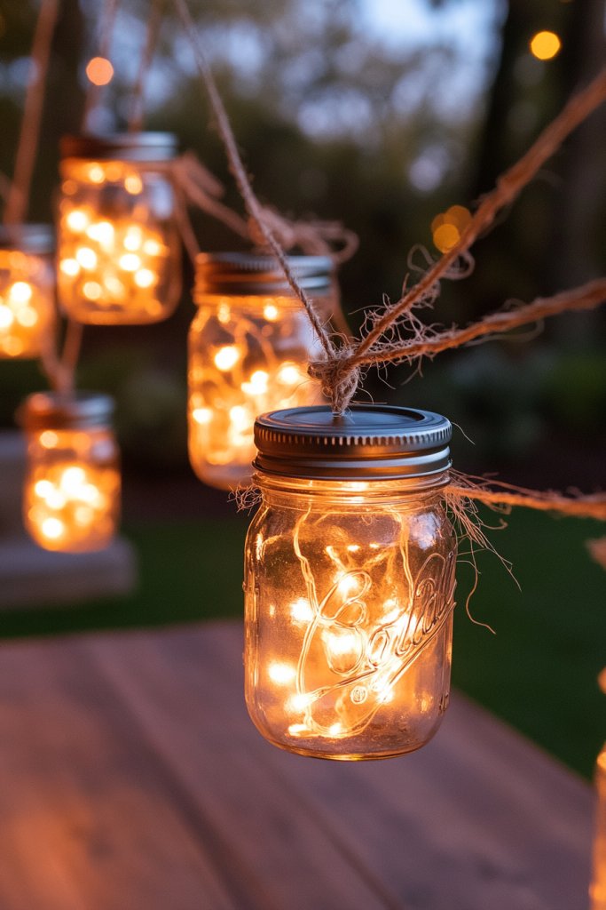 7. Mason Jar Lanterns with Fairy Lights for Ambiance