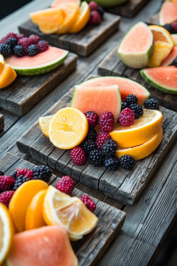 8. Rustic Wooden Plank Serving Boards with Seasonal Fruits