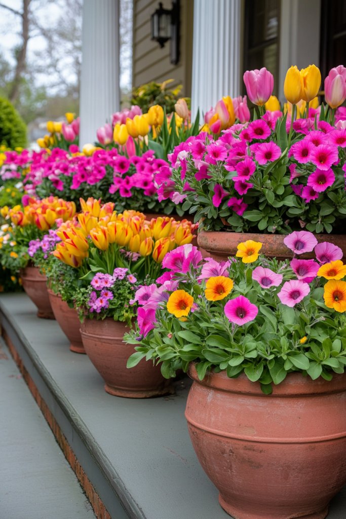 Bright potted flowers are an easy win for sprucing up your porch and instantly boosting curb appeal. They make your home feel inviting and lively, especially in spring. Plus, caring for flowers can be a relaxing hobby. Ready to add a splash of color that says, ‘Welcome!’ without much fuss? Go ahead, start planting and watch your porch bloom into a spring paradise!