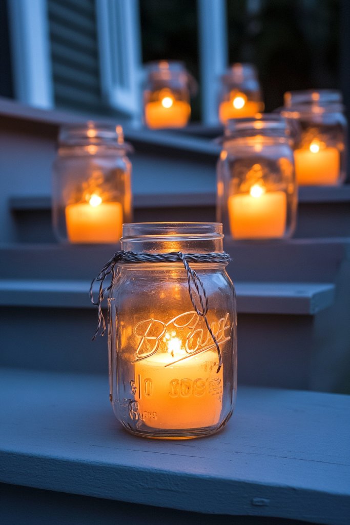 Paint or decorate jars with seasonal motifs, initials, or patterns to suit your style. Add small decorative stones or faux moss inside for extra charm. Incorporate personalized tags or mini chalkboards for messages. Mix textures by combining glass jars with metal or wood accents. Create themed sets for holidays or special occasions to keep your porch lively.