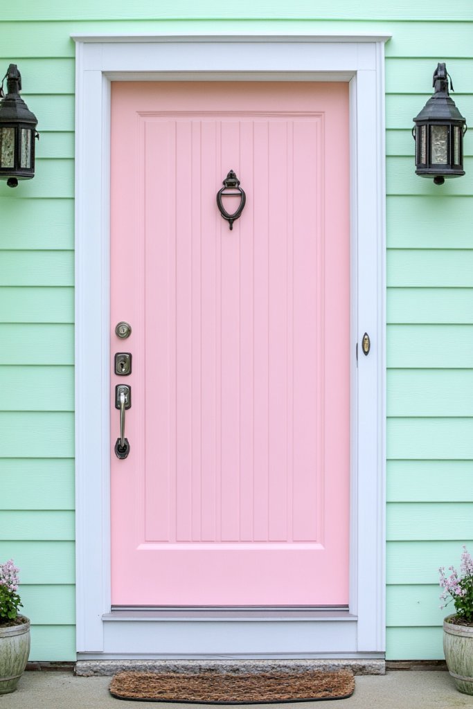5. Freshly Painted Front Door in Soft Pastel or Bold Spring Hue