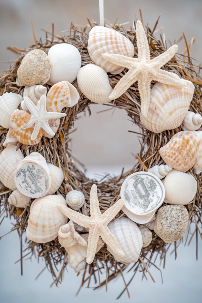 Start with a sturdy wreath base and gather a collection of faux or real seashells and sand dollars. Attach larger shells directly with hot glue, spacing them evenly around the base. Fill in gaps with smaller shells, starfish, or tiny faux seaweed for added dimension. Secure each piece thoroughly and let the glue dry completely. For extra durability, you can spray the entire wreath with a clear sealant, protecting against weather and wear. Hang using a sturdy ribbon or wire loop, and you’re ready to impress. This project takes about 30-45 minutes.