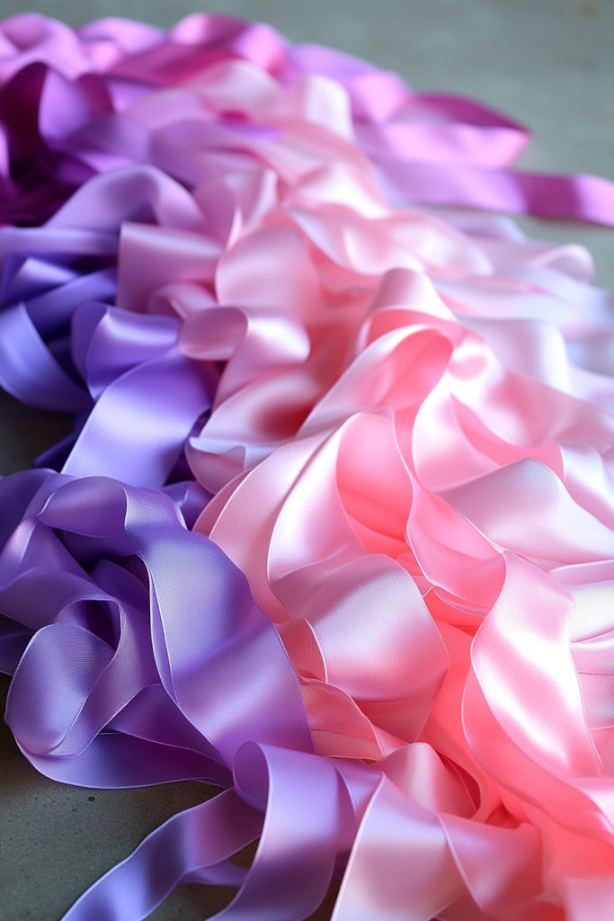 Start with a sturdy wreath base—wire or foam—and attach the ribbons using floral pins, hot glue, or sewing for durability. Arrange the ribbons in graduated shades, securing the top edge to the wreath. Layer ribbons in overlapping groups to create a flowing cascade, letting the ends hang freely. Add small floral or decorative elements sporadically along the ribbons for visual interest. Finish with a hanger or loop for easy display.