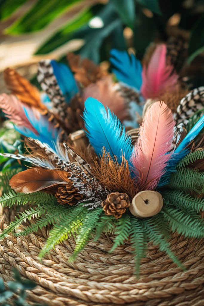 Choose feathers with metallic accents or in gradient ombre styles for extra flair. Mix and match colors to match your mood or decor theme, from muted neutrals to bold hues. Incorporate small beads, charms, or tassels for added detail. For a more minimalist look, use fewer feathers and more open fern spaces, creating a breezy, airy feel.