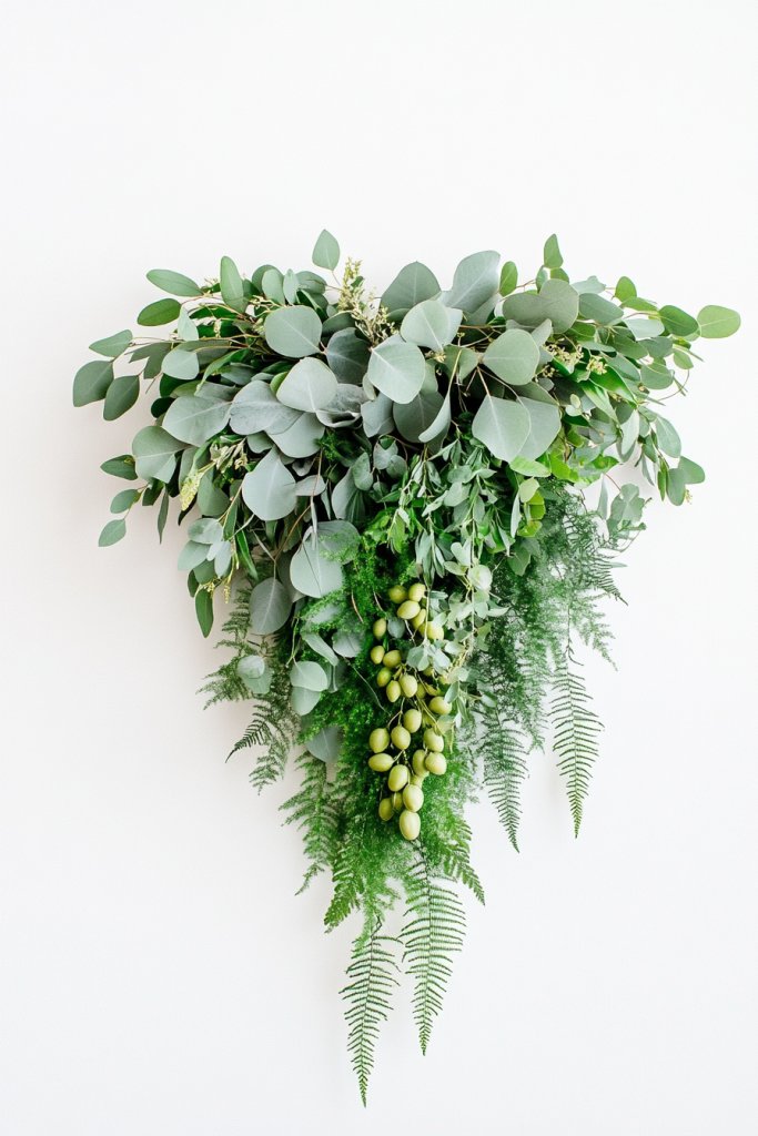 For a more personalized touch, incorporate different types of foliage—sage, ferns, or olive branches—for varied textures. During different seasons, swap in dried or faux greenery in subdued colors for a year-round look. For a slightly more decorative approach, add small wooden or ceramic accents, but keep the overall minimalist aesthetic. The shape can be altered to asymmetrical or elongated forms to suit your space and taste. This style is highly adaptable and easy to refresh annually.