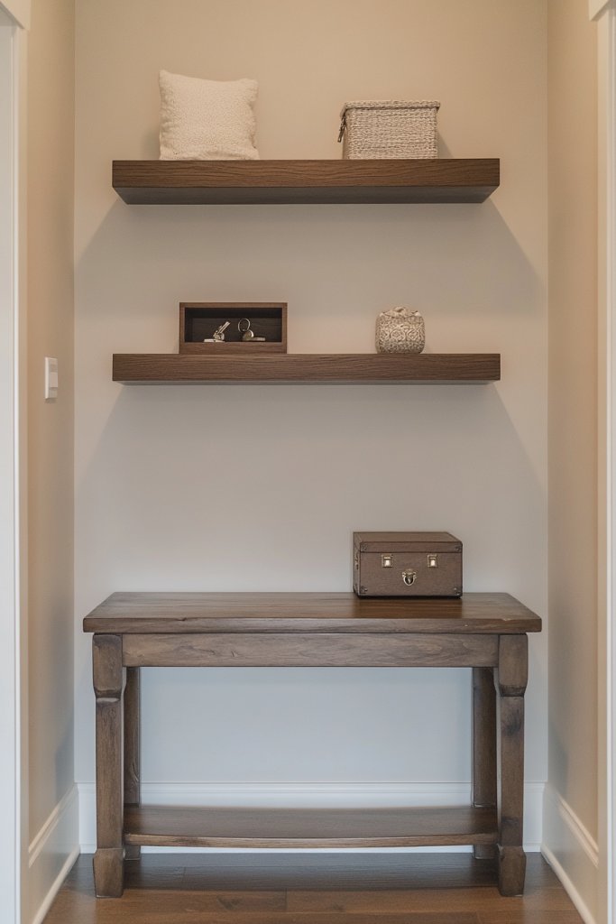 13. Floating Shelves for Entryway Organization and Style