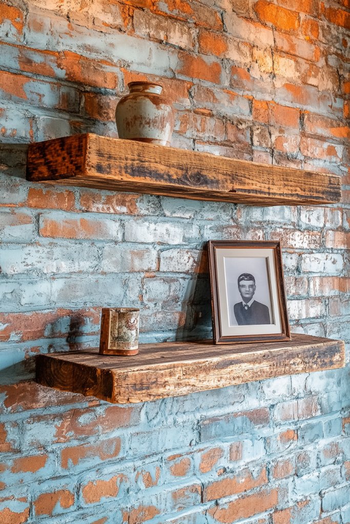 17. DIY Floating Shelves with Recycled Materials for Eco-Friendly Decor