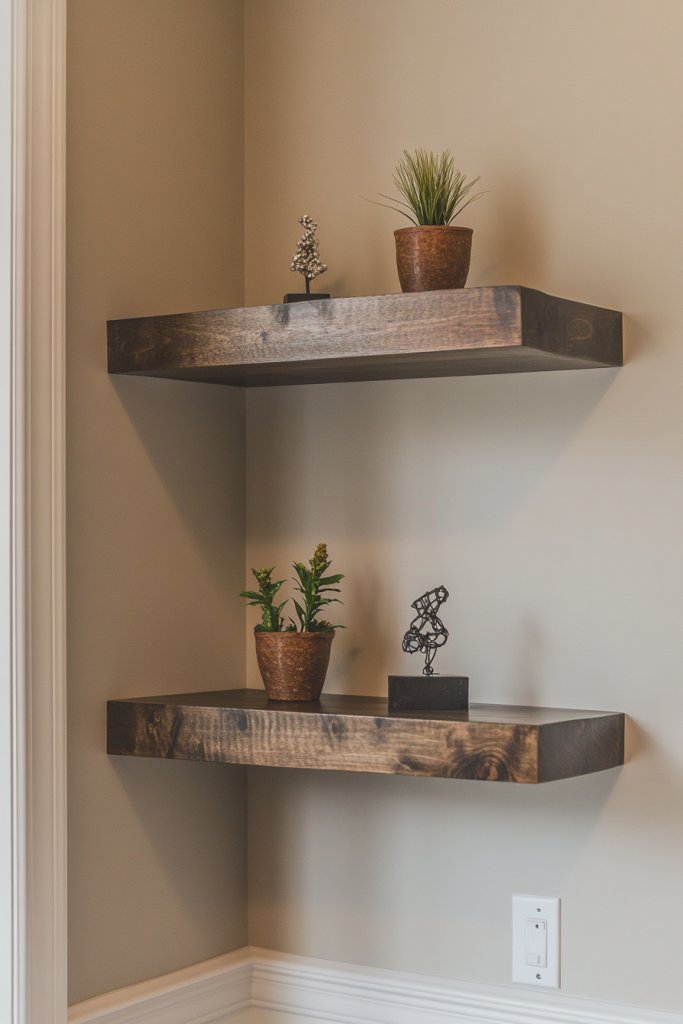 3. Corner Floating Shelves to Optimize Small Spaces