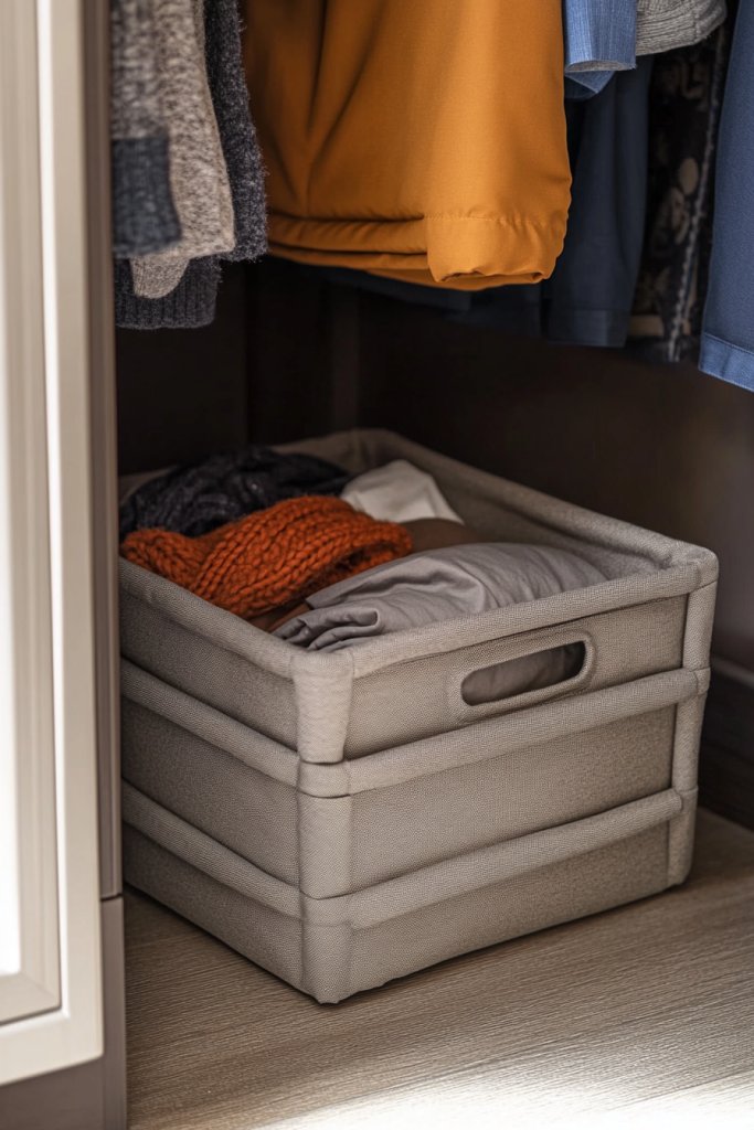 Choose from sturdy fabric, plastic, or woven options depending on your decor and durability needs. Use labels or tags on the crates to identify contents quickly. Incorporate colorful or neutral tones to match your closet’s aesthetic. These crates are versatile enough to fit in closets, under beds, or in storage rooms.