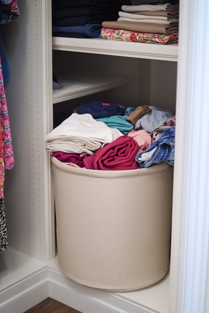 Choose clear acrylic for a minimalist, contemporary look, or fabric baskets for a cozy, textured feel. Use different sizes for various items—small for jewelry, large for sweaters. Incorporate decorative trims, labels, or embroidery to match your decor style. These baskets are flexible for use on open shelves, inside drawers, or on closet floors.