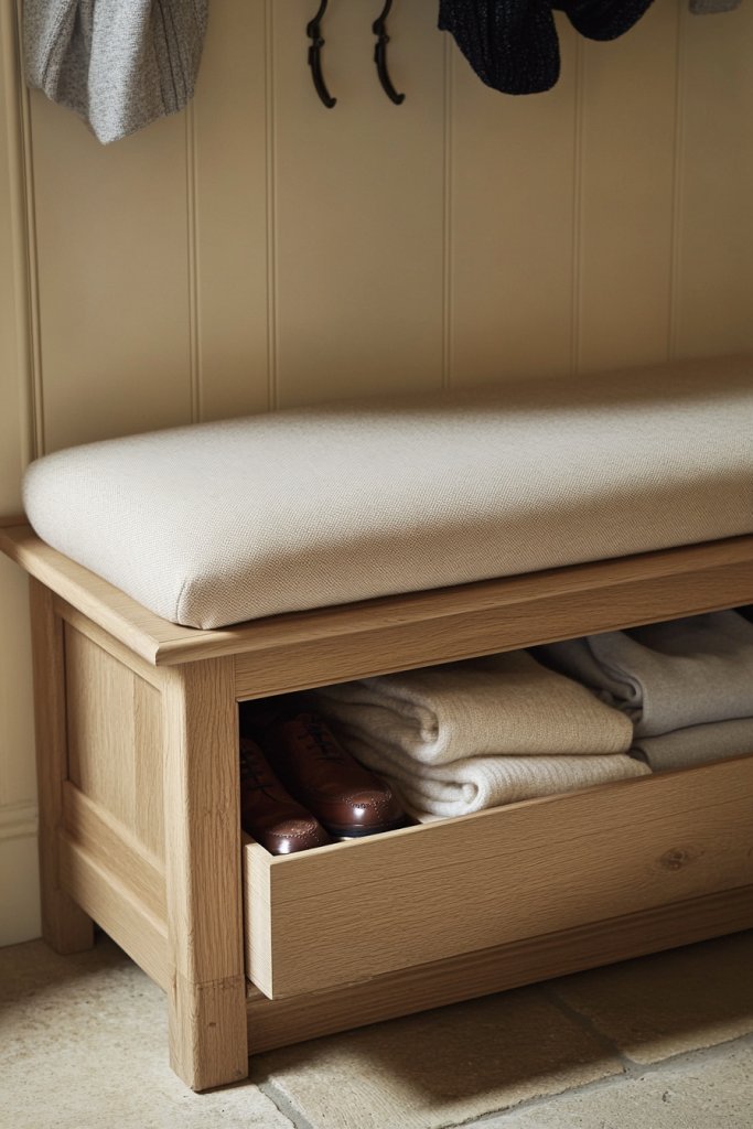 16. Add a Small Bench with Storage for Seating and Organization