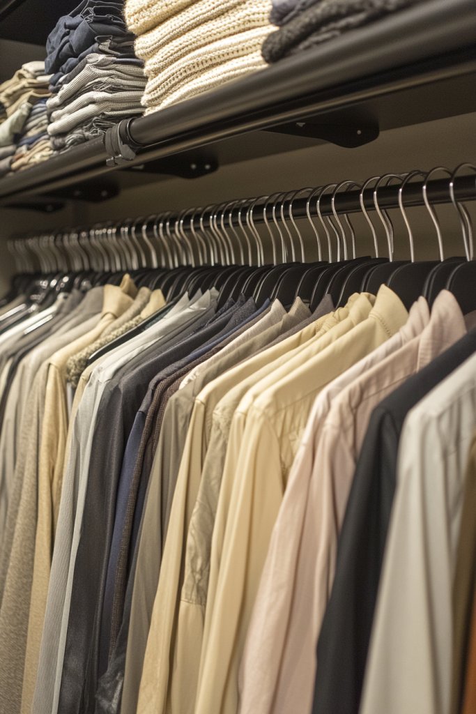 Imagine a curated selection of versatile clothing—classic tees, tailored pants, a few statement pieces—all hanging neatly together. The space feels calmer, more organized, and easier to manage. The color palette is harmonious, making outfit choices quick and effortless. It’s like walking into a boutique where every piece was chosen with purpose.