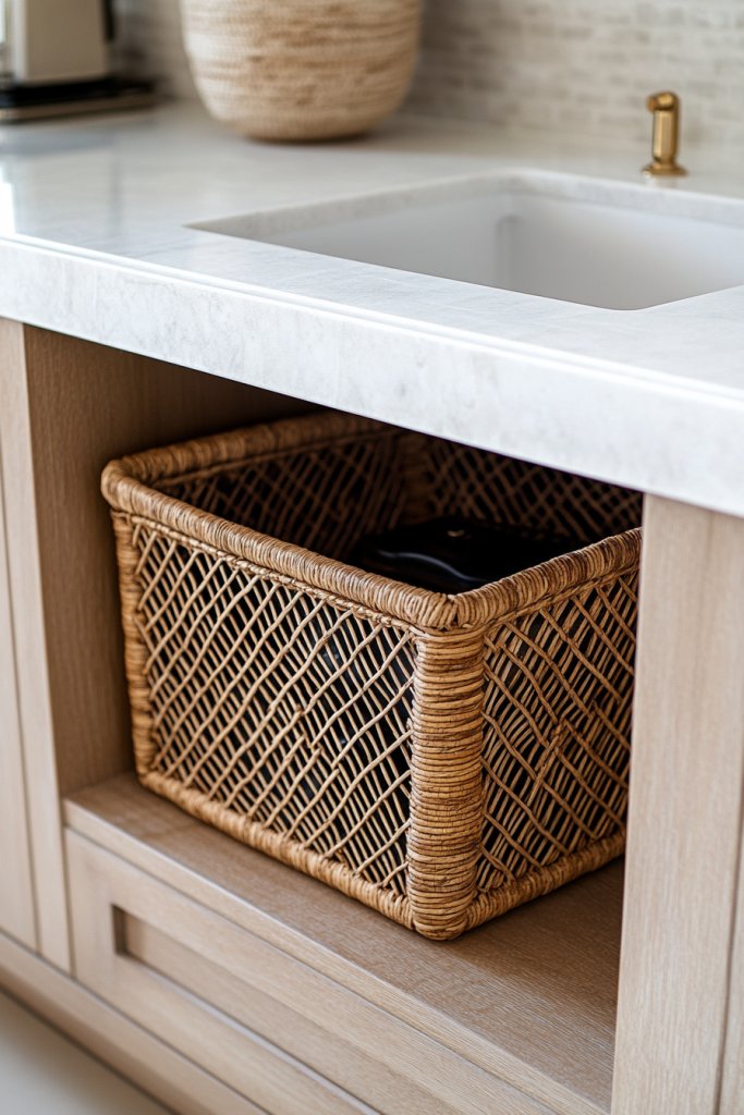 Decorative baskets elevate your waste disposal area, making it part of your decor. They encourage better recycling habits and keep your kitchen tidy. With a few simple updates, you turn a necessary chore into a design opportunity. Ready to hide the trash and love your space? Your kitchen will be both stylish and functional.