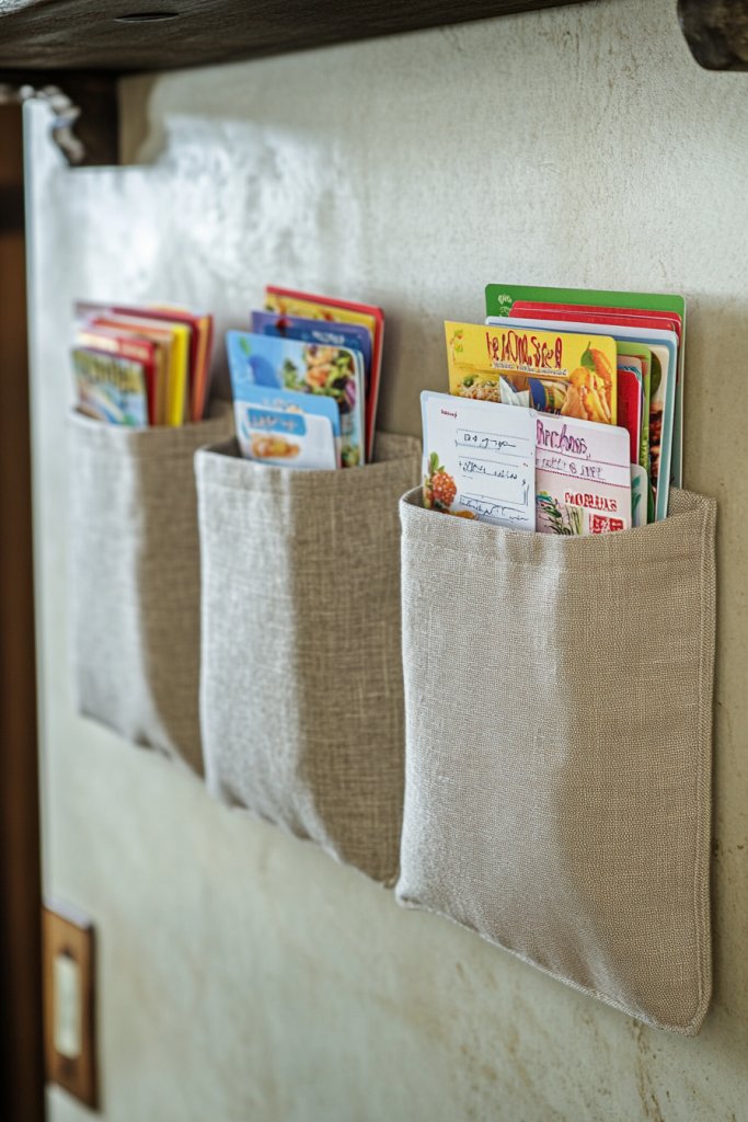 11. Canvas or Fabric Wall Pockets for Recipe Cards