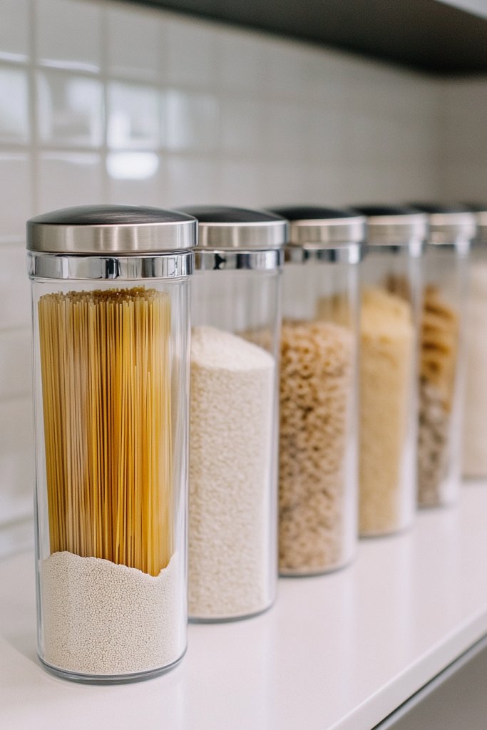 Use decorative or themed labels to match holidays or seasons. Consider color-coding contents for quick identification—red for pasta, green for grains, etc. Add small chalkboard tags for a rustic look, or layer different textures with fabric or paper liners inside the jars. Incorporate a small spice rack nearby for complementary ingredients. Reorganize contents seasonally to keep things fresh.