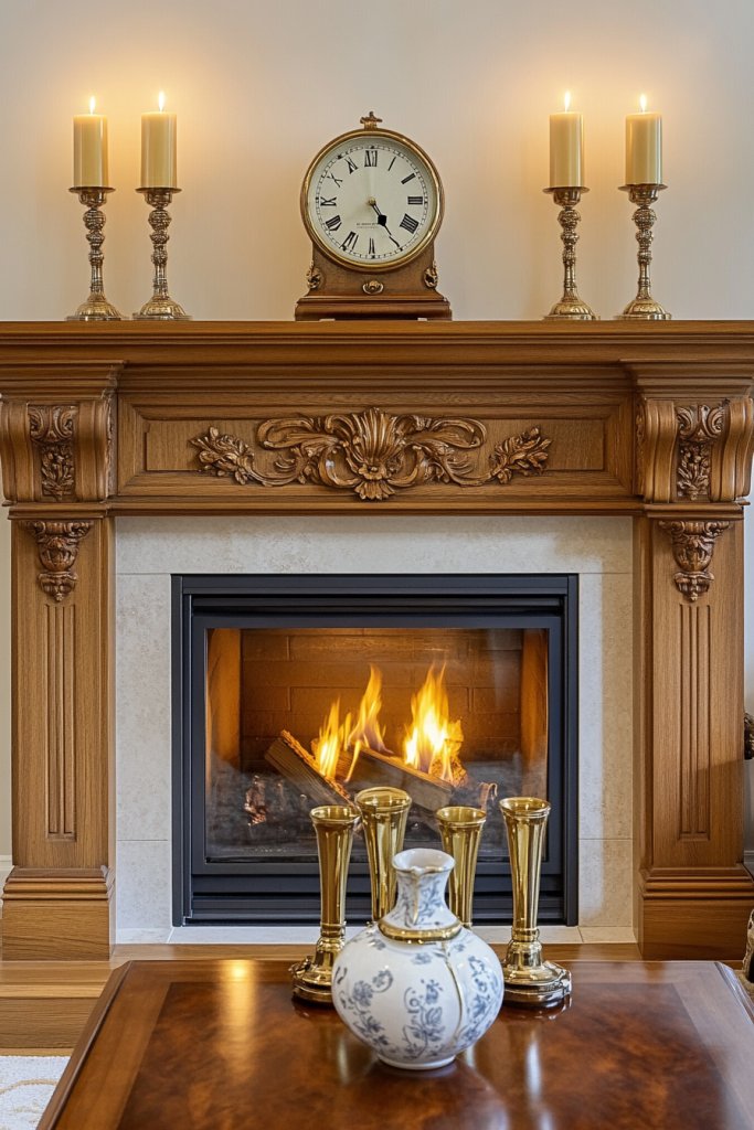 1. Elegant Fireplace Mantel Decor with Timeless Accessories