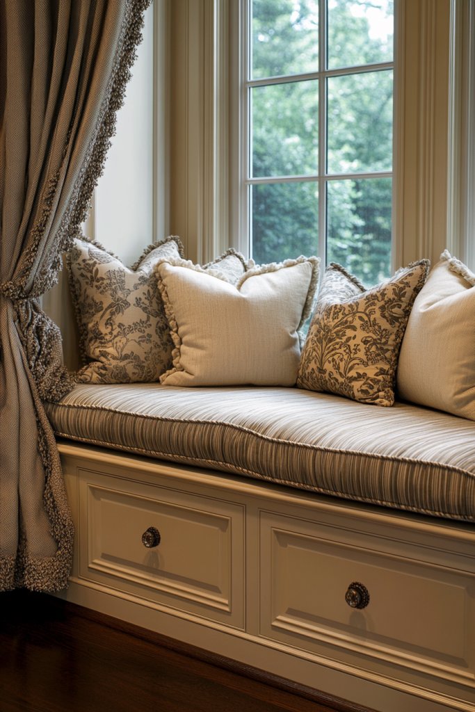 19. Timeless Window Seat with Plush Cushions and Curtains