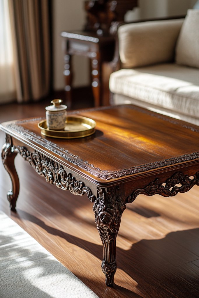 A vintage carved coffee table adds immediate character and depth to your living space. It acts as a conversation starter and anchors your decor with timeless appeal. Once you incorporate such a piece, your room’s personality shines through effortlessly. Ready to hunt for that perfect vintage treasure?