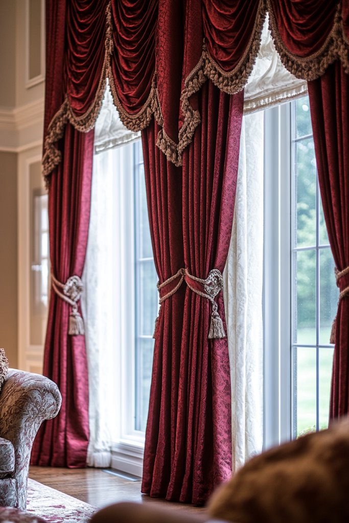 Opt for fabrics like velvet, brocade, or heavy linen for a traditional feel. For a more casual look, choose lighter cotton or linen, and add decorative trims or fringe. Valances can be tailored or gathered, depending on your preference. For larger windows, add tiebacks or layered curtains for depth. Seasonal swaps with different fabrics or colors keep the look fresh.
