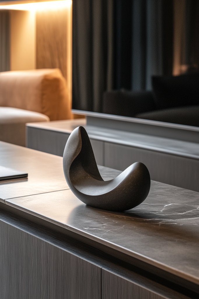 Combine textures like matte ceramics with glossy metals or soft fabrics with hard surfaces. Use textured objects like woven baskets, velvet cushions, or matte-finished sculptures to add variety.