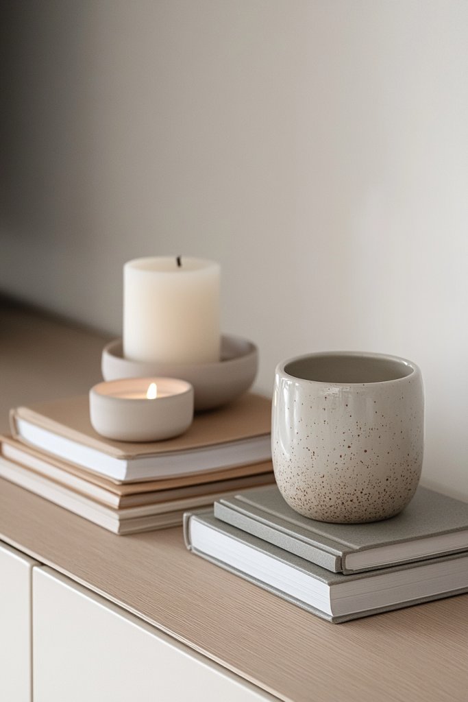 For small spaces, use scaled-down objects to avoid overcrowding. Seasonal accents like textured throws or decorative trays can add variety without breaking symmetry.