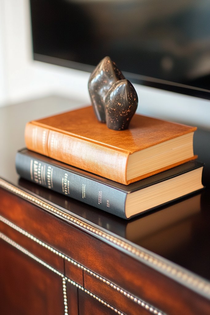 Mix in textured or metallic accessories for added interest. Regularly switch out books to keep your display fresh and engaging.
