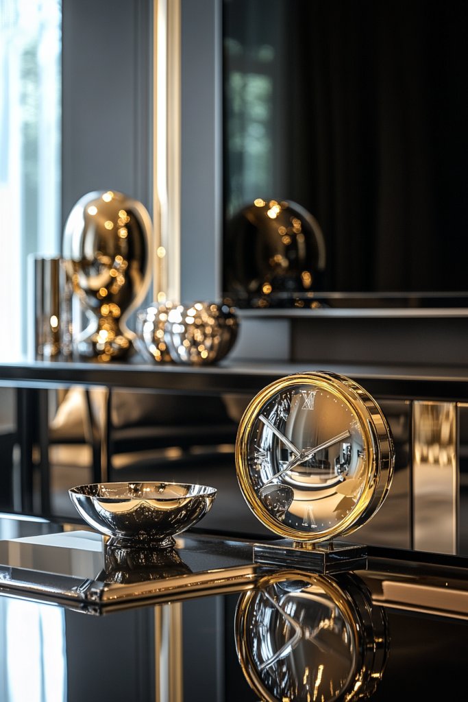 Perfect for elevating your decor with minimal effort. Picture a surface decorated with smooth ceramics, glossy metallic accents, and soft textiles like woven throws or plush cushions.