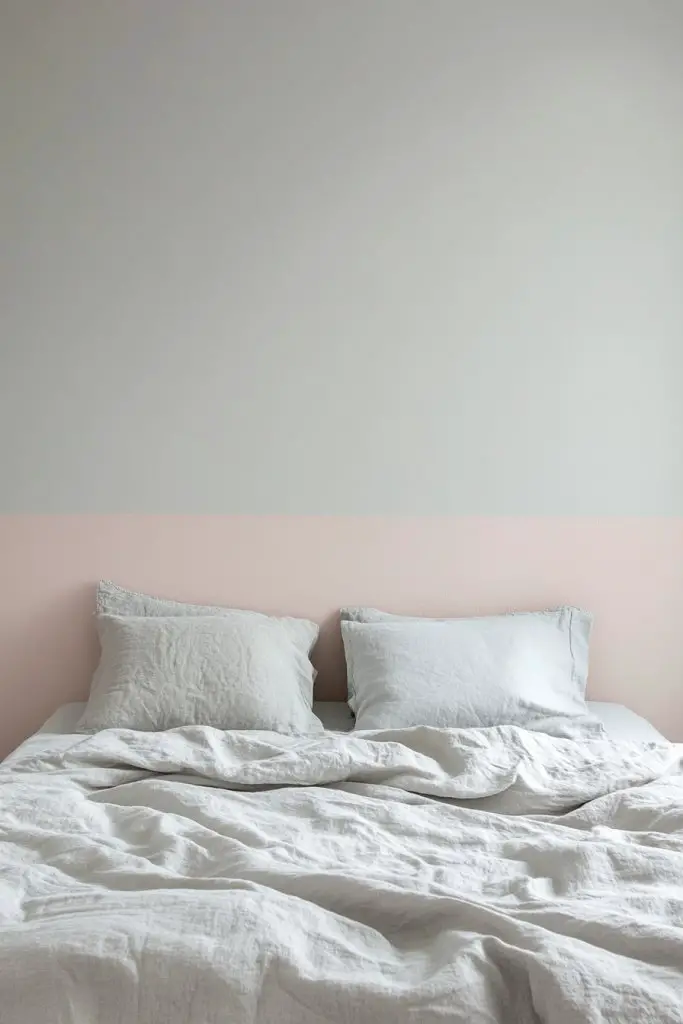 Picture walls painted in soft, muted shades like blush and warm beige or cool gray and icy white. The subtle contrast provides visual interest without overwhelming the senses. The smooth transition between tones fosters a peaceful flow, making the space feel open and uncluttered. The overall effect is understated elegance that invites relaxation.