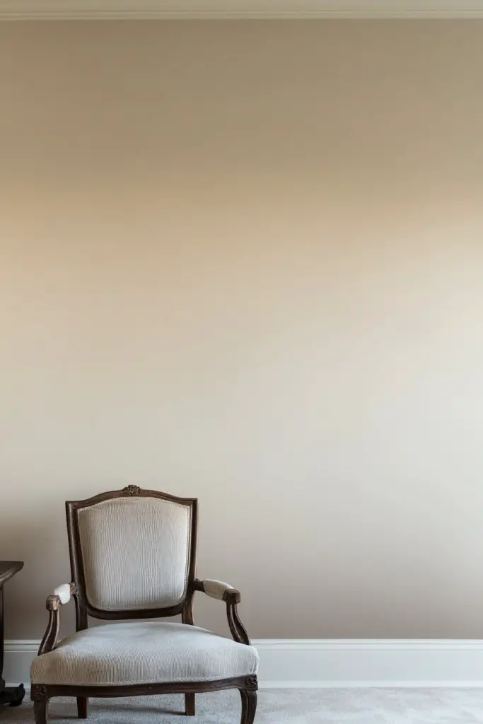 Picture a gentle gradient shifting from a light cream at the top to a deeper taupe at the bottom. The seamless blend creates a soothing visual flow, almost like a watercolor painting. When sunlight hits it, the colors subtly change, adding warmth and richness. The smooth transition makes the wall feel layered and dynamic, without any harsh lines.