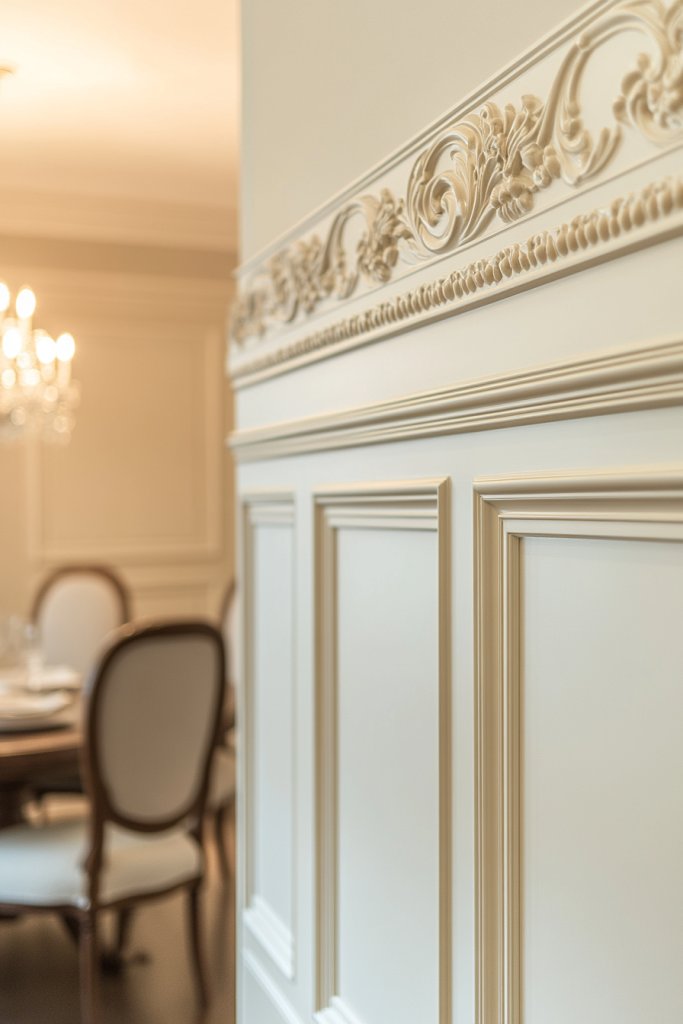 9. Wainscoting with Decorative Molding for Classic Detailing