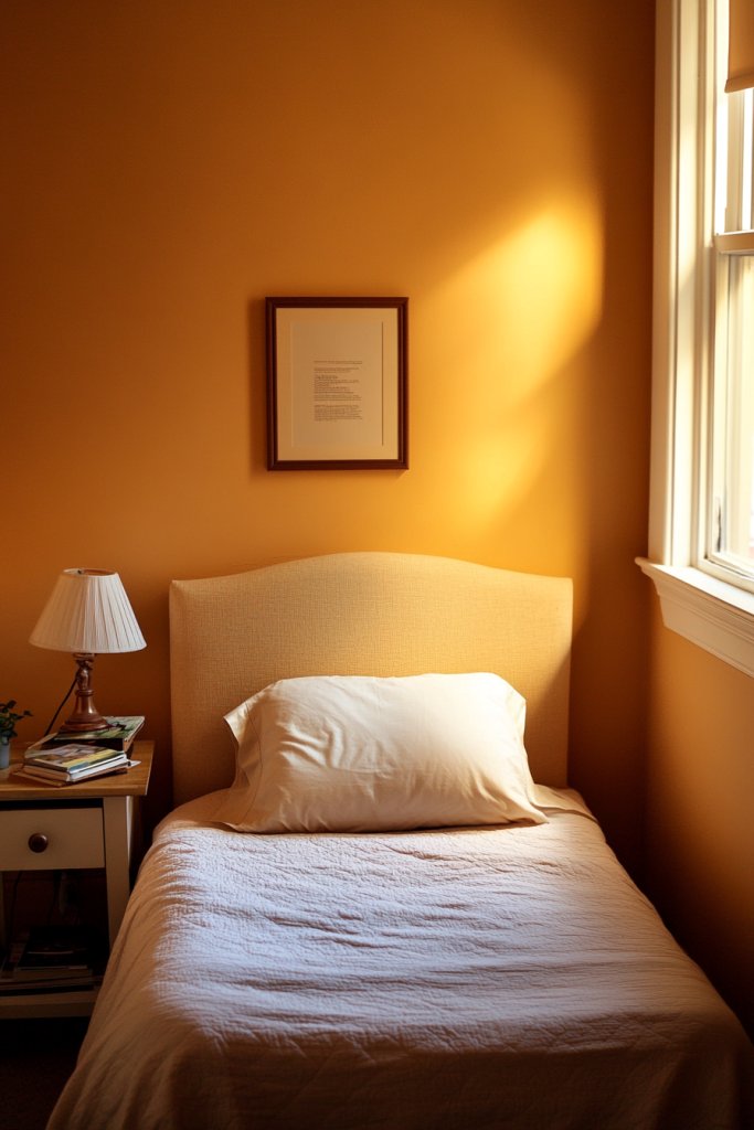 Picture walls painted in a soft honey hue that reflect natural light. Layer with airy textiles, like sheer curtains and lightweight bedding, to keep the space feeling open. Use warm lighting—think soft yellow or amber bulbs—to cast a gentle, inviting glow. Add a few reflective surfaces or metallic accents to bounce light around.