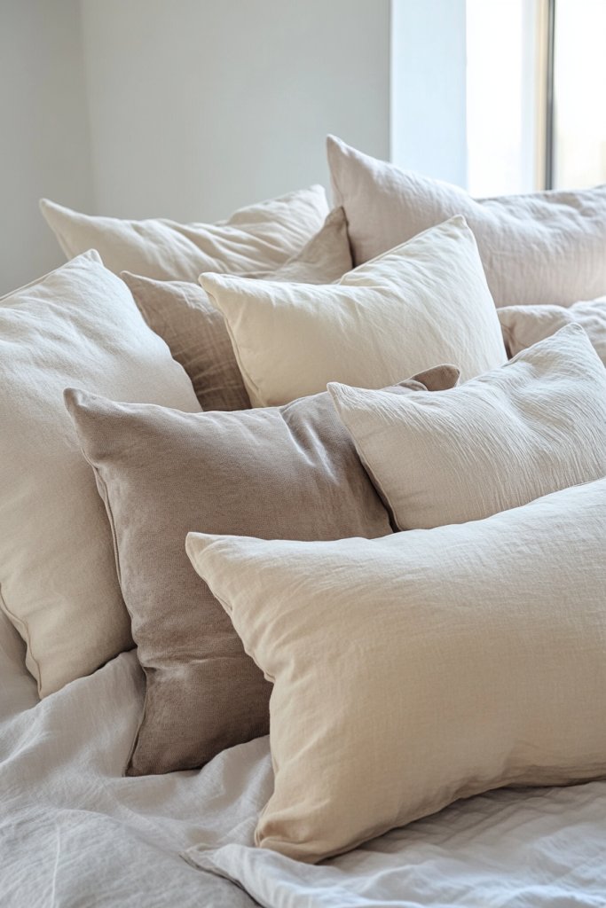 1. Layered Neutrals with Oversized Throw Pillows