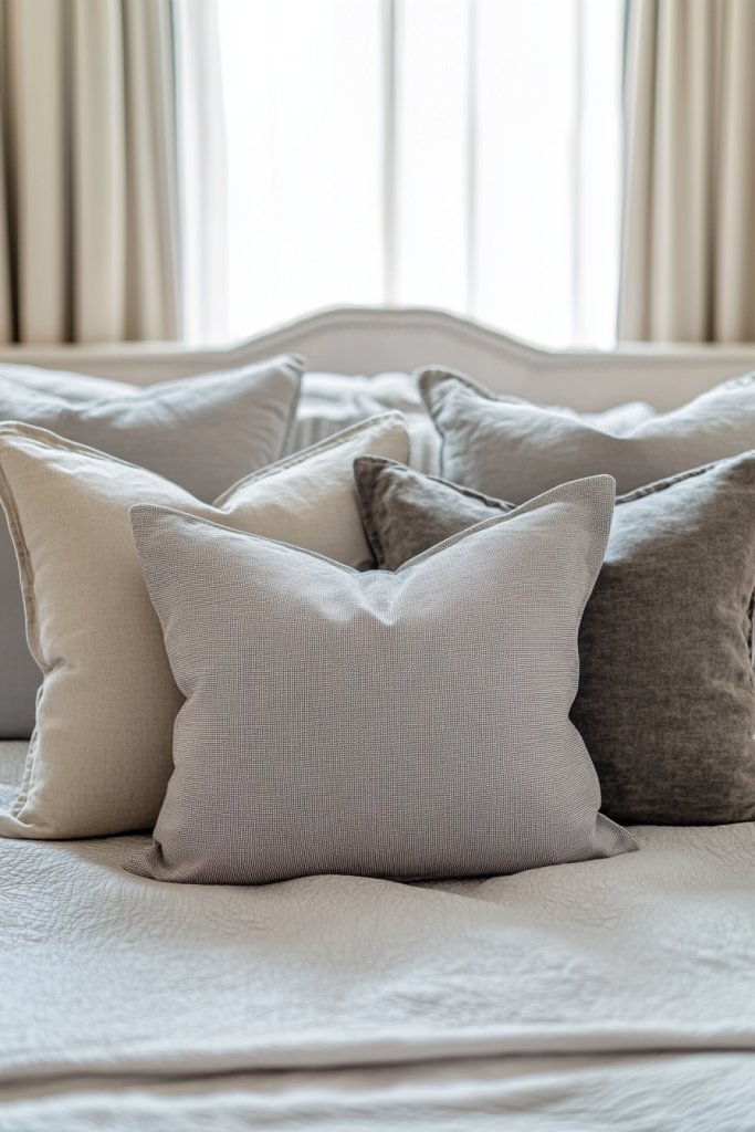 Start by selecting a neutral palette—think creams, taupes, or soft greys. Mix large, plush pillows with smaller accent cushions, ensuring they complement rather than compete. Use pillowcases with different textures and subtle patterns for depth. Arrange the pillows in a casual, slightly asymmetrical manner to keep it relaxed. Keep the arrangement balanced but not too uniform, so it feels inviting.