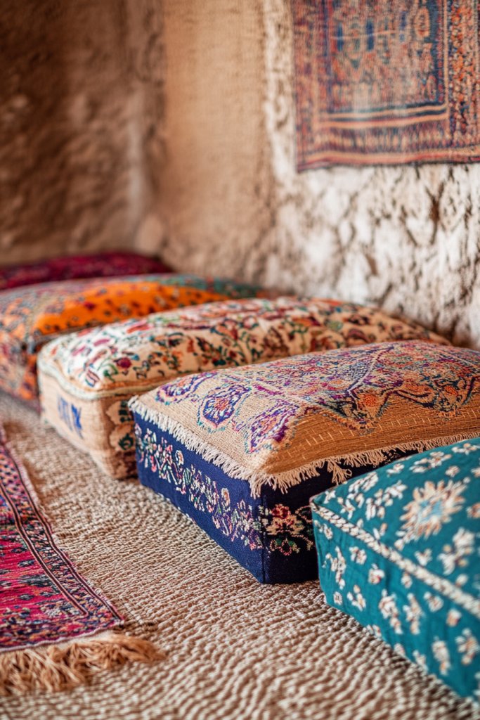 2. Boho Chic with Patterned Floor Pillows